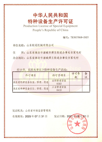 山東桂冠機(jī)械有限公司成立于2008年,注冊資金1600萬元,現(xiàn)有員工200多人,中高級技術(shù)管理人員45人,占地面積27000多平方米,生產(chǎn)車間面積12000多平方米。公司具備壓力容器產(chǎn)品的設(shè)計(jì)、制造(證書編號為:TS2237703-2025)、壓力管道安裝(證書編號為TS3837607-2025)全套壓力容器資質(zhì);通過國家ISO9001質(zhì)量管理體系認(rèn)證、美國ASME認(rèn)證、歐盟CE認(rèn)證;擁有建筑安裝機(jī)電工程專業(yè)承包叁級資質(zhì)、建筑工程施工總承包叁級資質(zhì)及對外貿(mào)易經(jīng)營出口權(quán)…